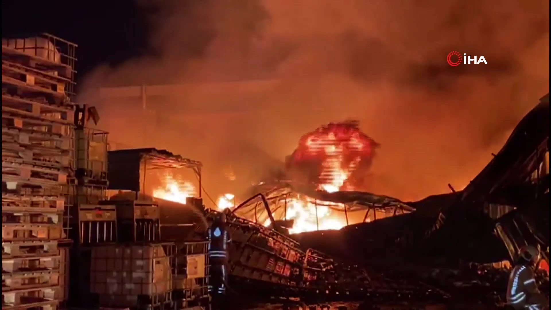 Alev alev yanan fabrikada yer yer patlamalar olurken çok sayıda itfaiye ekibinin yangına dört bir yandan müdahalesi sürüyor.