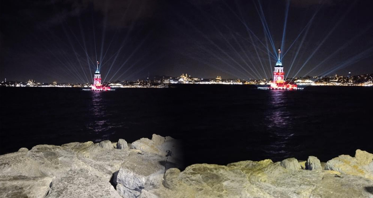 Kız Kulesine Türk Bayrağı yansıtıldı