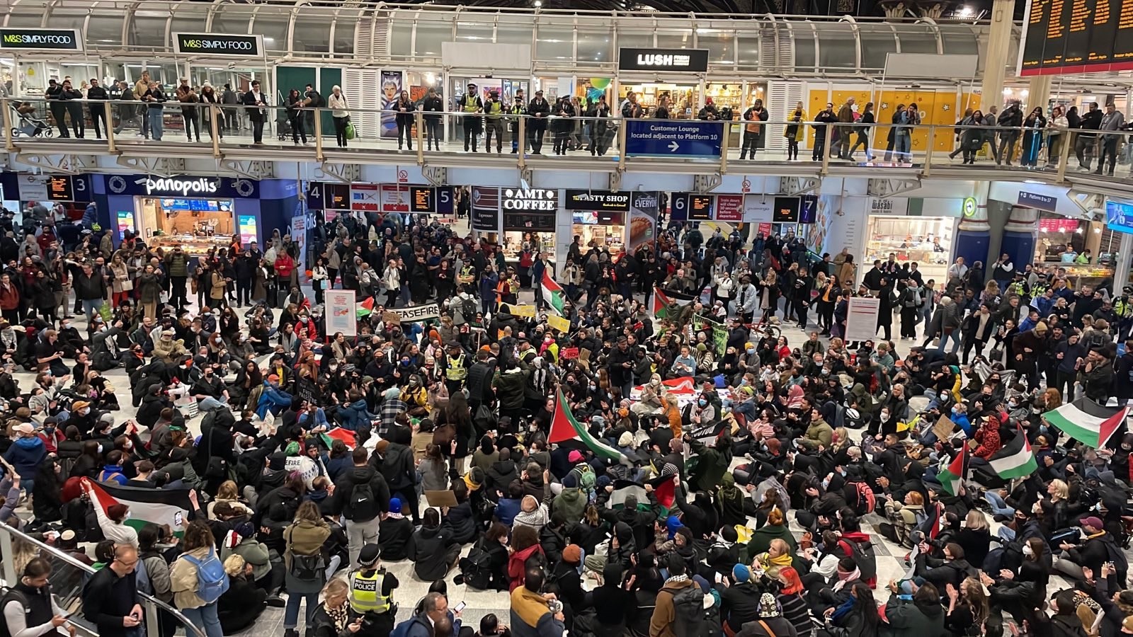 Londrada tren istasyonunda Gazzede ateşkes için oturma eylemi