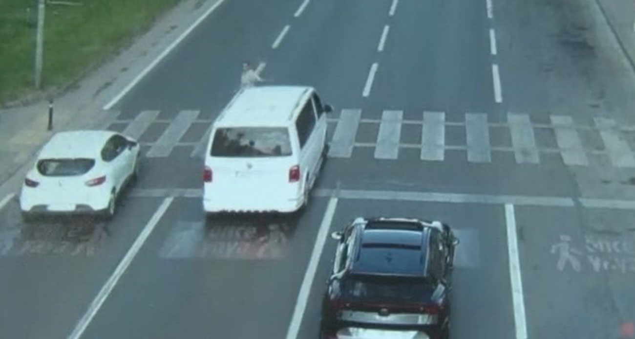 Yaya geçidindeki vatandaşa rağmen gaza bastı O anlar dron kamerasına yansıdı