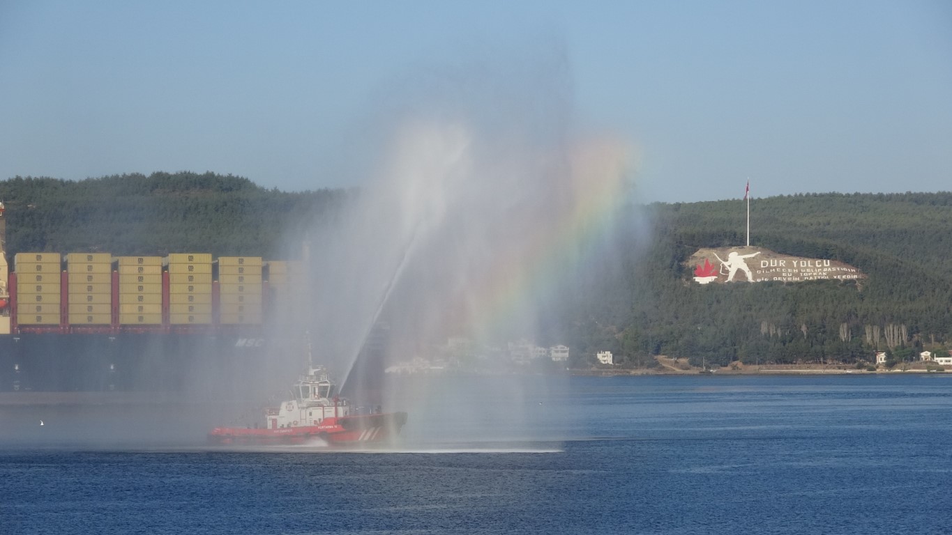 Cumhuriyetin 100üncü yılında Türkiye ismi verilen dev gemi Çanakkale Boğazından geçti