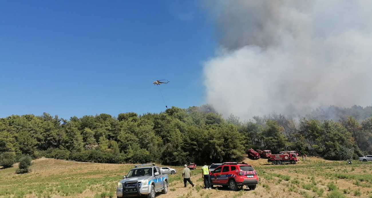Manavgatta orman yangınına havadan karadan müdahale
