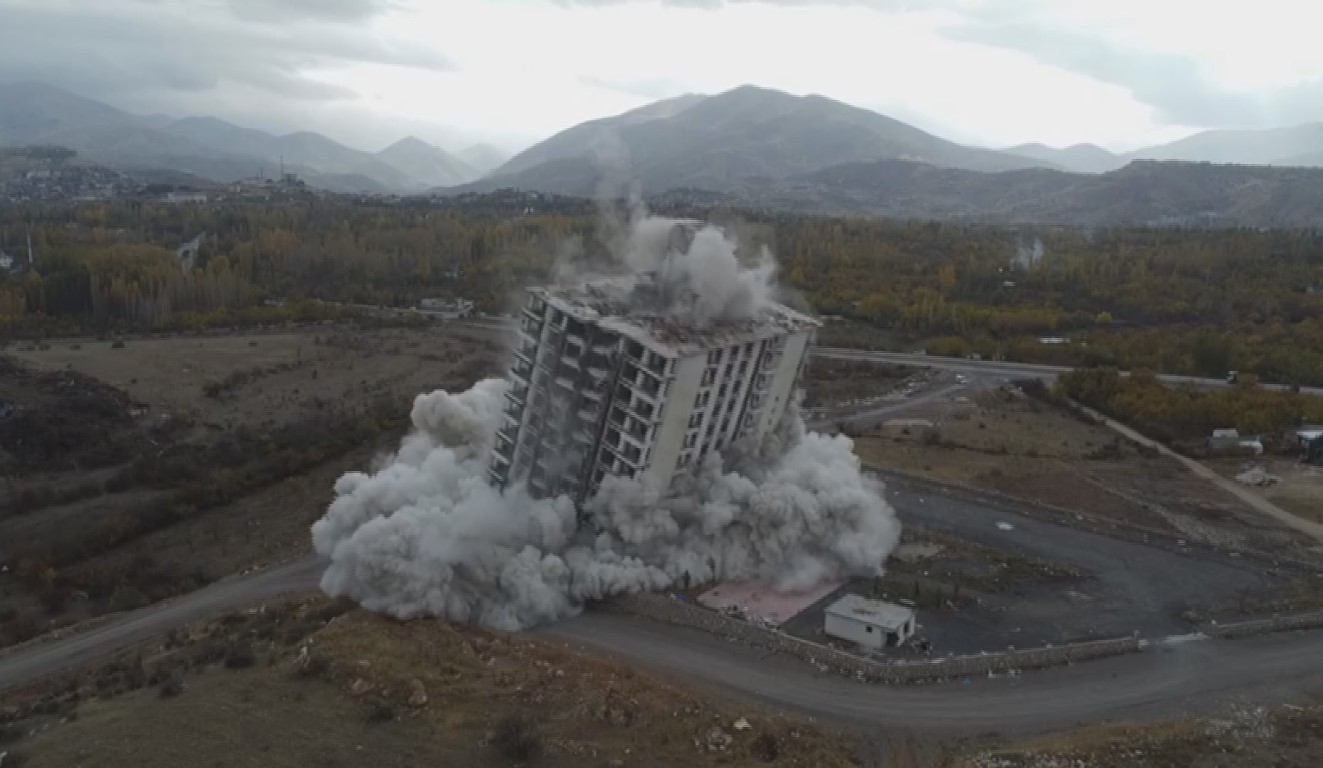 Alınan çevre güvenliğinin ardından binaya yerleştirilen bin 200 kapsülden oluşan 120 kilogram dinamit, geri sayım yapılarak patlatıldı. Patlatma ile birlikte saniyeler içerisinde bina yerle bir olurken ortaya devasa toz bulutu çıktı.