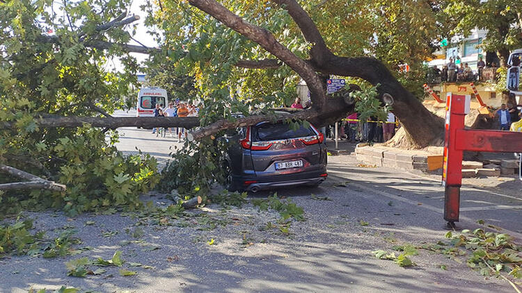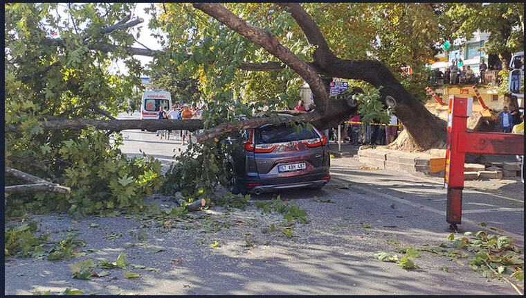 Zonguldakta 150 yıllık çınar cipin üstüne devrildi araçtaki 3 kişi kurtarıldı