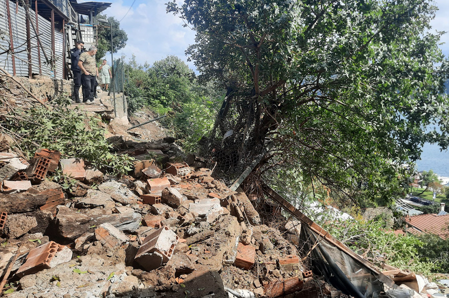 Sağanak yağış nedeniyle Üsküdarda bahçe duvarı çöktü