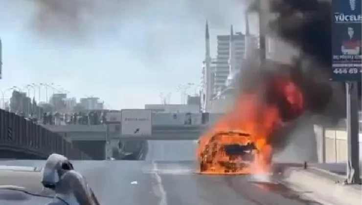 Beylikdüzü E5te seyir halindeki otomobil alev alev yandı