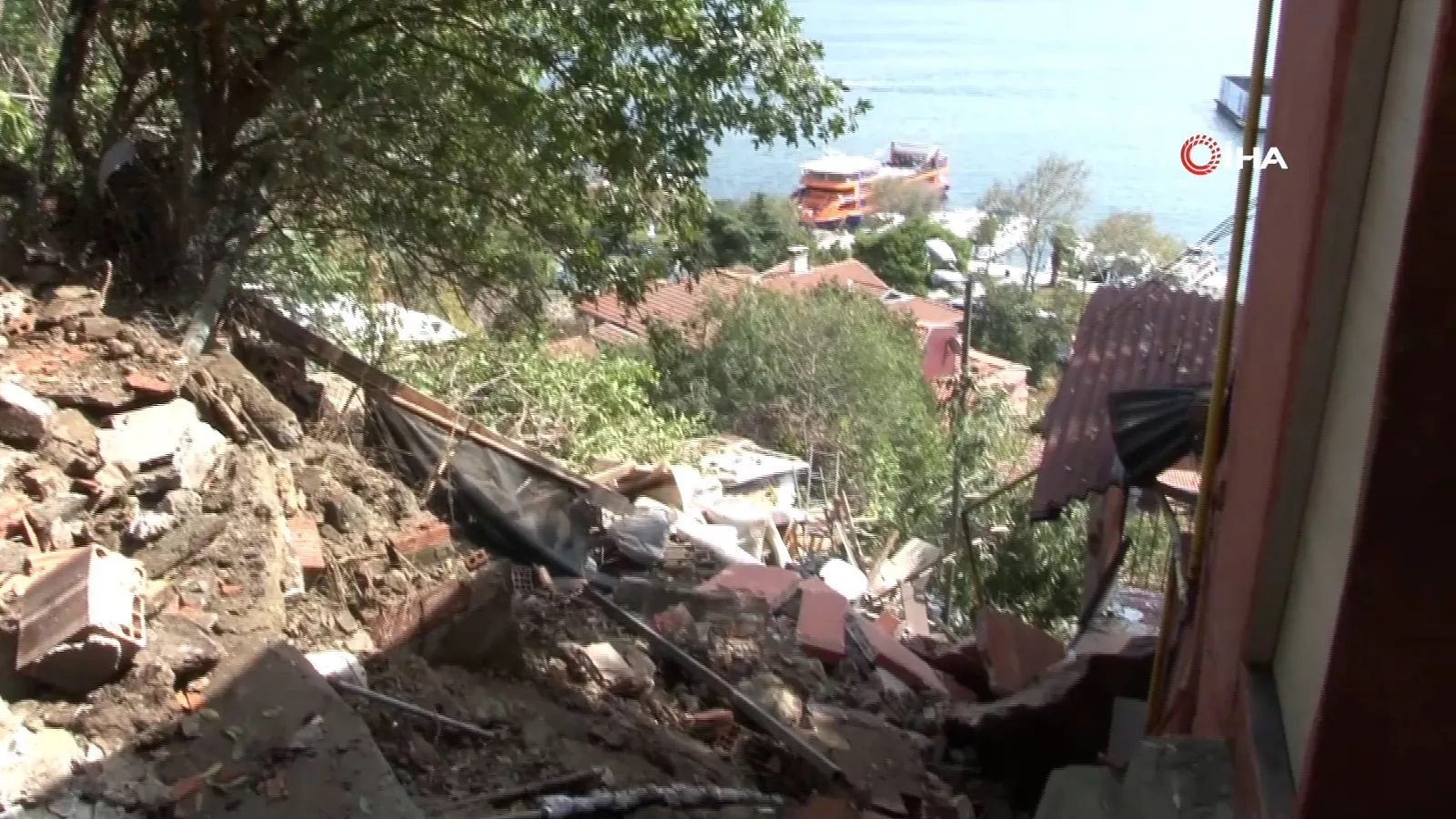 Beşiktaşta gecekonduların arasına kaya düştü facianın eşiğinden dönüldü