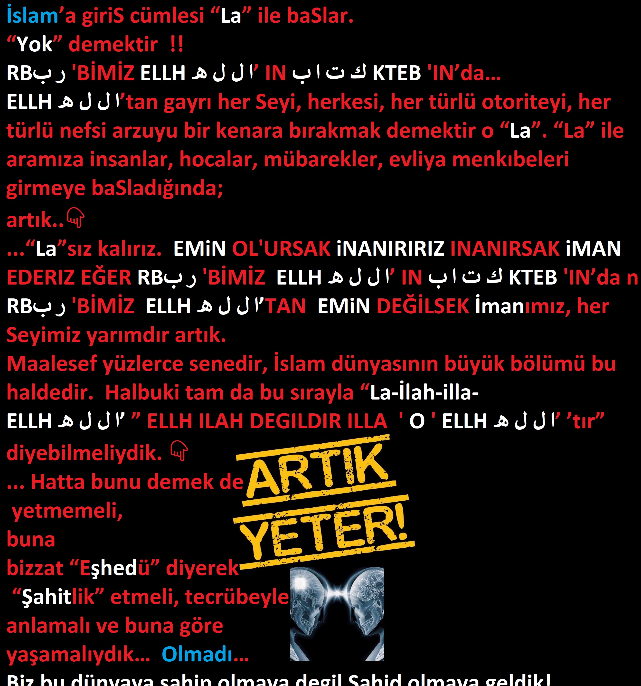 İHBAR EDIYORUM VE DİYORUM KI !! PEYGAMBER KELİMESİ EL KTEB ال ك ت ابBIMIZIN ÖĞRETİSİ DEĞİLDİR! RBر ب'Bİ E L L H ا ل ل ه OLANIN EL KTEB ال ك ت ابBIMIZIN DIŞINDA SIFATLAR ÜRETMESİ ŞİRKTİR.