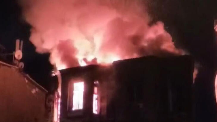 Beyoğlunda 2 katlı metruk bina alev alev yandı