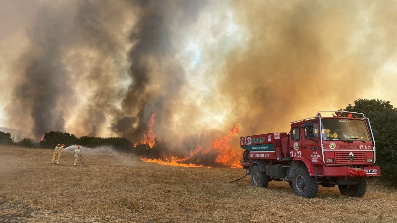 Çanakkalede ağaçlık alanda yangın