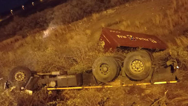 Kamyon şarampole yuvarlandı 1 ölü