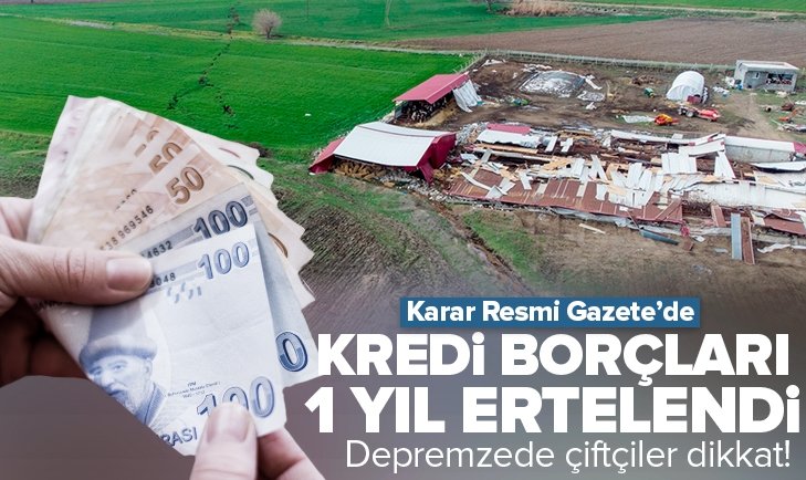 Ziraat Bankası depremzede çiftçilerin düşük faizli kredi borçlarını 1 yıl erteledi.