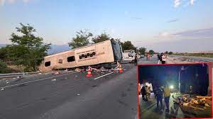 Karşı şeride geçen kum yüklü kamyon yolcu otobüsüyle çarpıştı 6 ölü
